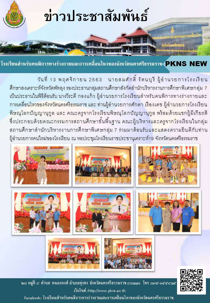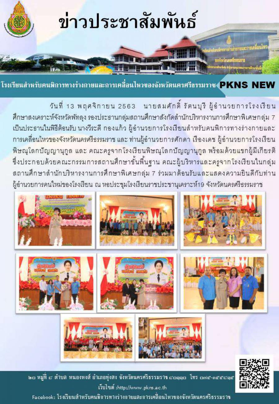 งานตอนรับผู้อำนวยการ วีระดี กอง แก้ว ผู้อำนวยการโรงเรียนสำหรับคนพิการทางร่างกายและการเคลื่อนไหวของจังหวัดนครศรีธรรมราช